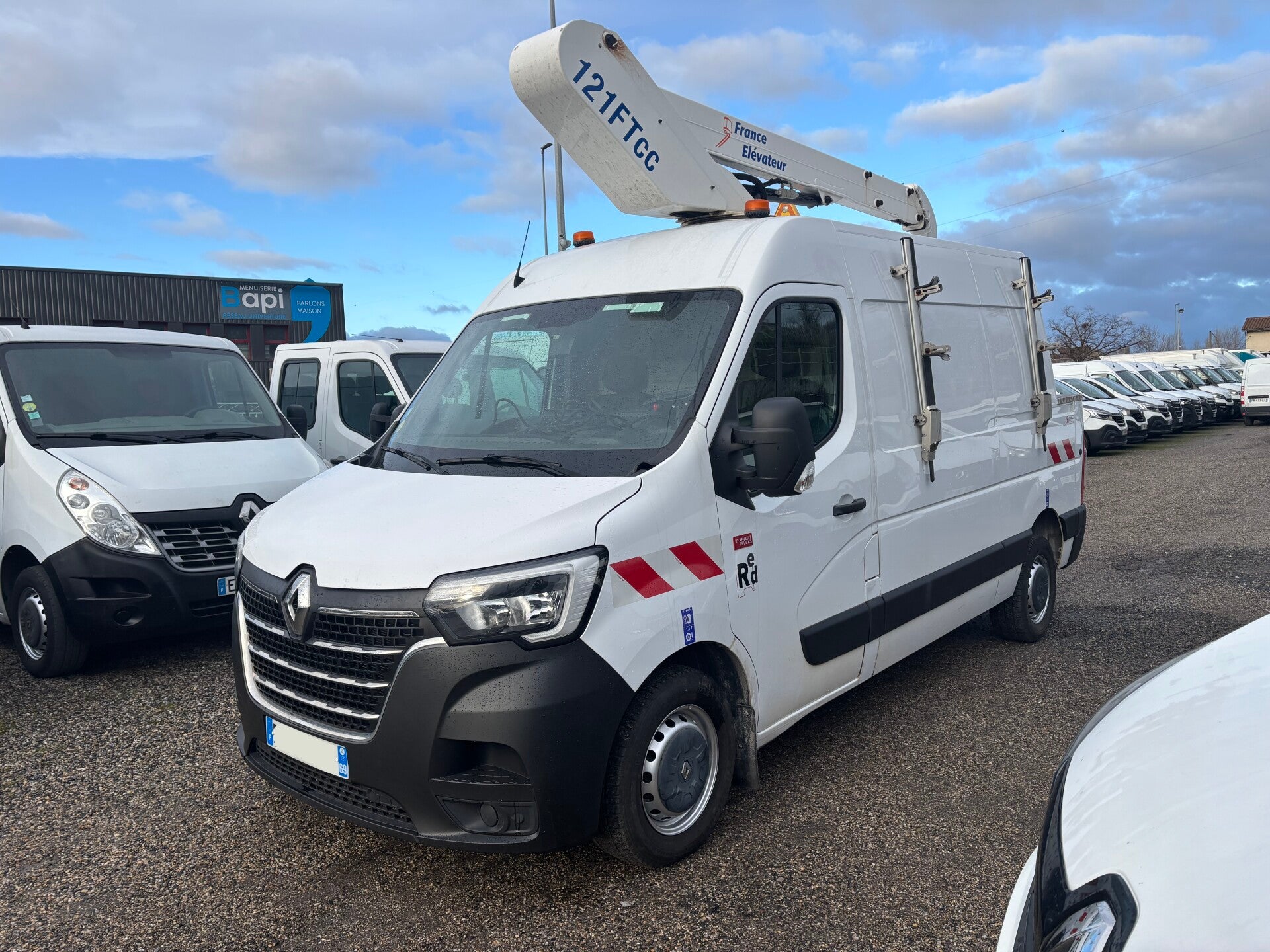 Renault MASTER Nacelle Tronqué L2H2 Dci 150cv France élévateur 121 FTcc 290h, (NACELLE TRONQUÉ), BLANC, 8cv, 4 portes, mise en circulation le 04-02-2021, première main, garantie 12 mois (12 MOIS). 3 places, couleur intérieur : NOIR, longueur : 5,55 mètres, boîte de vitesse : manuelle